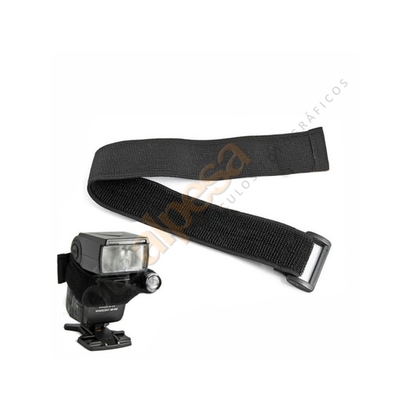 Correa elástica de Velcro color negro, especial para su uso en Fotografía, de 38mm. de ancho x 380mm. de largo (estirada máx. 600mm.).