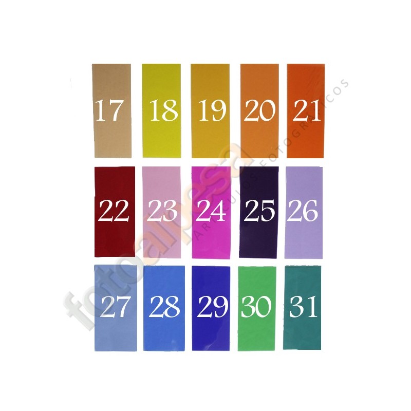 Los quince filtros de color en este kit son los más populares de una gama de más de 300 colores que Rosco produce para teatro, cine y televisión. La selección incluye ámbares, azules, lavanda, pajizo, oro pálido, rosa pálida, rojo,magenta y verde. Estos filtros son útiles para fotografía de productos, fondos o realce de tonos de piel.