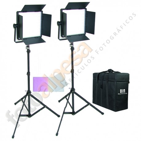 Incluye: 2 Paneles LED Bi-color con aletas CN-600CSA , 2 Pies de estudio y maleta de transporte.