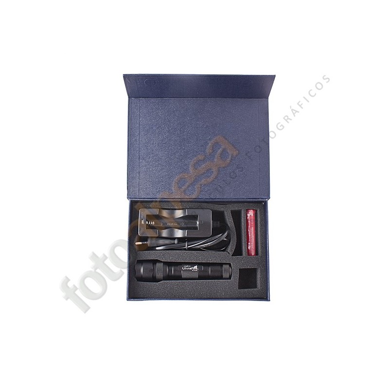 Linterna led blanco+1 pila recargables 18650+cargador 18650+caja edición especial