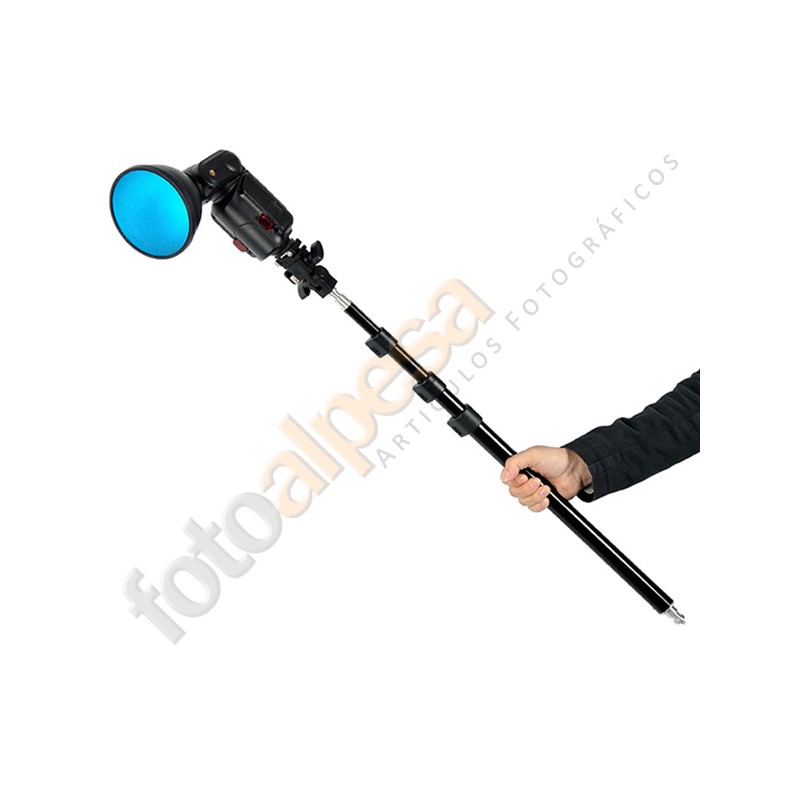 Brazo de extensión (55-160cm) en aluminio para utilizarse con flash de mano, e incluso con pequeñas cámaras de fotografía para tomas con un ángulo superior.