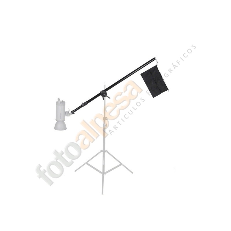 La Jirafa de estudio a diferencia de los soportes verticales convencionales, ofrecen un brazo adicional basculante y telescópico, ofreciendo al usuario puntos o ángulos de iluminación que no podría conseguir con un soporte fijo. La Jirafa de estudio es adecuada para aportar luz cenital o iluminar fondos.