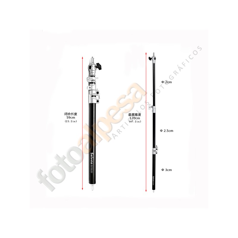 Este brazo extensible ligero de alta calidad es el elemento prefecto para el profesional, pudiendo utilizarlo con cualquier pie de estudio.