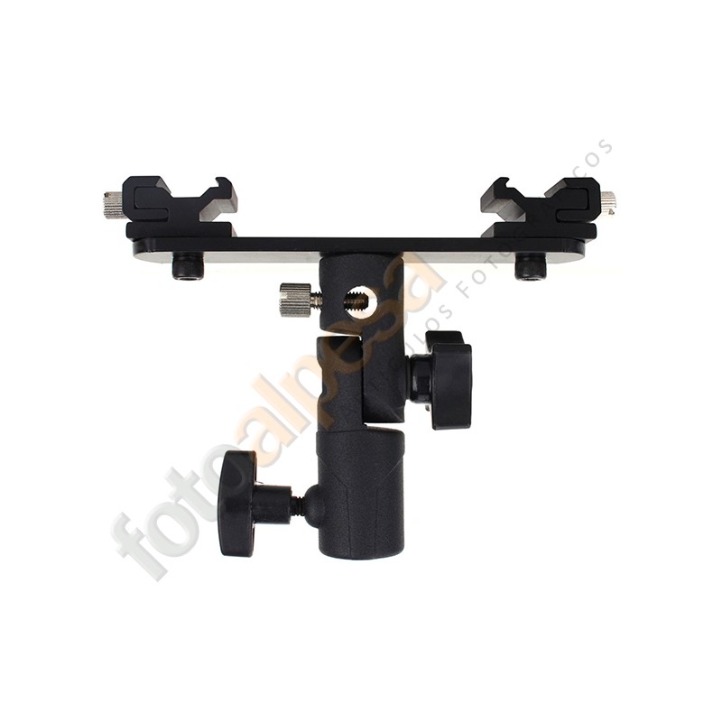 Rótula FA2F para acoplar sobre un trípode o pie de estudio dos Flashes compactos de zapata y un paraguas de 8mm.