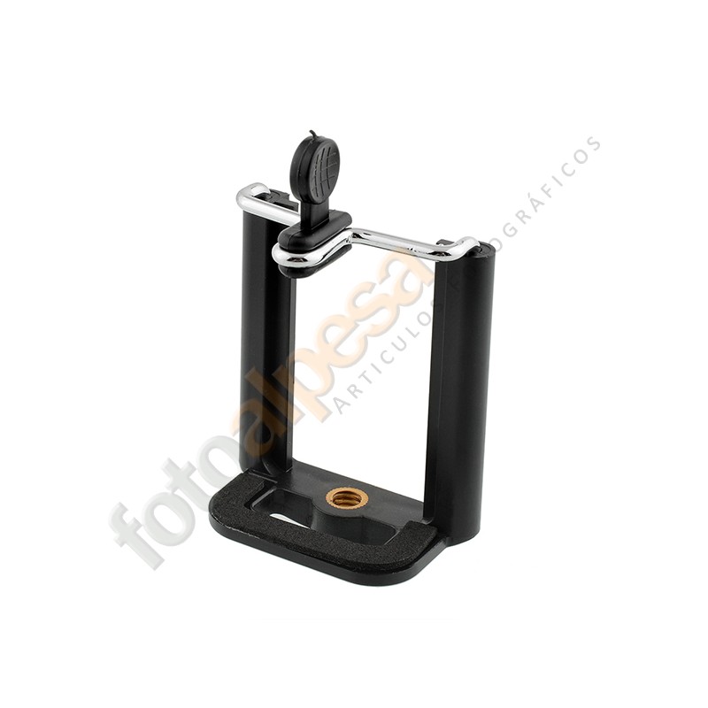 Con este fantástico soporte podrás utilizar tu móvil como una auténtica cámara. Soporte para smartphone compatible para cualquier dispositivo cuyo ancho o alto esté entre 5.5 cm. y 8,5 cm. Puede usarse con cualquier trípode con rosca de 1/4 de pulgada de diámetro. Si su trípode usa rosca de 3/8 de pulgada, no se preocupe, tenemos adaptador a su disposición. Puede encontrarlo en nuestra tienda o contactar con nosotros en el 630471079.